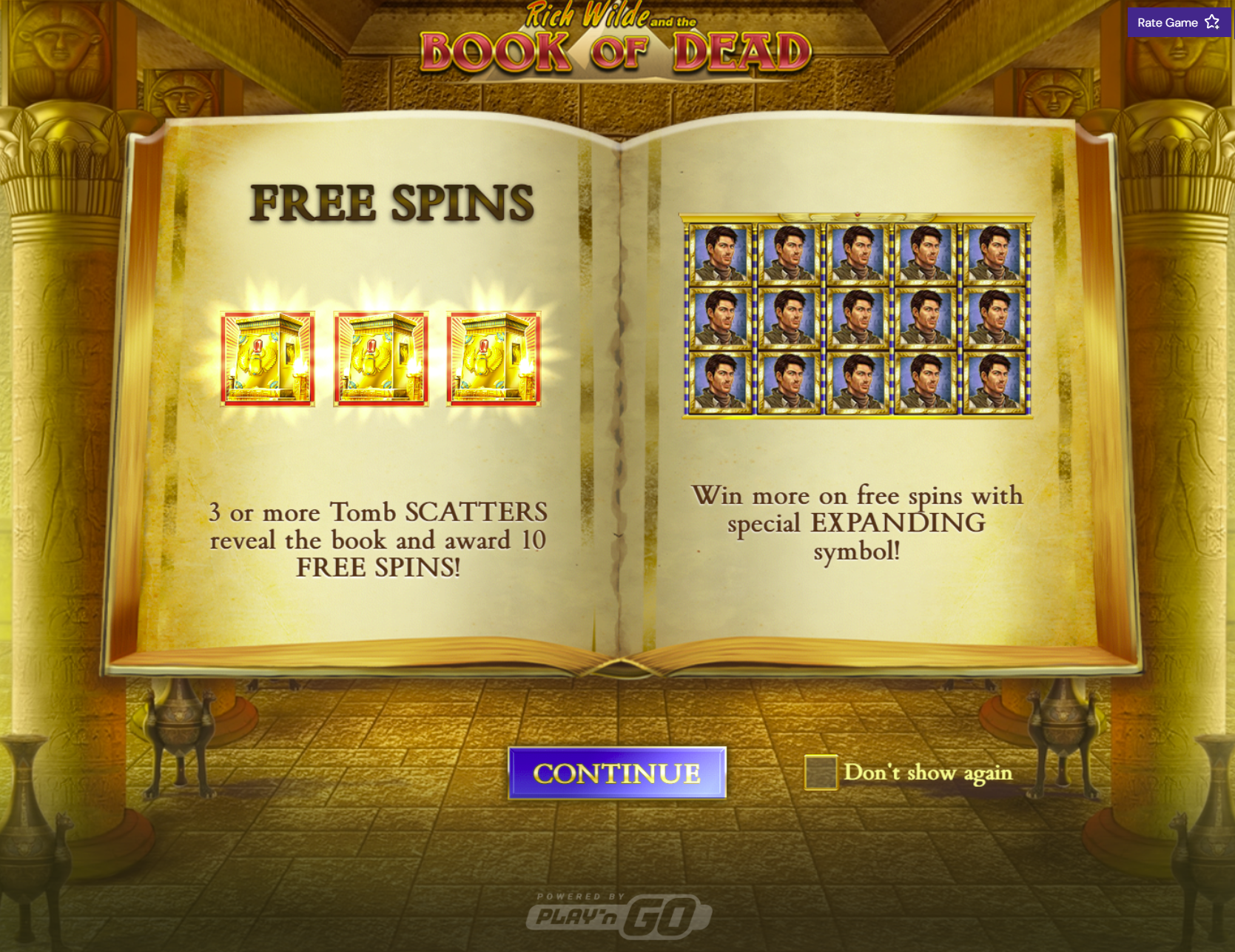 Rich Wilde and the Book of Dead is a popular video slot developed by Playn GO. Set in a richly detailed Ancient Egyptian world, the game combines classic slot mechanics with adventurous visuals and a high-stakes bonus system. It remains one of the most widely recognised slots, thanks to its simple core setup and the potential of big wins during its bonus rounds.